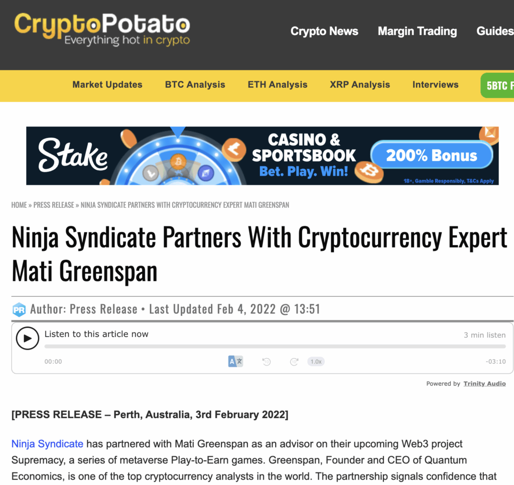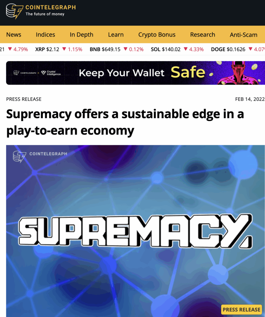 Supremacy was preparing for a series of major announcements—including a strategic partnership and a presale launch—but needed credible media exposure fast. The challenge? Many P2E projects were vying for press attention, and getting guaranteed placements on top-tier crypto outlets within tight timelines was increasingly difficult.